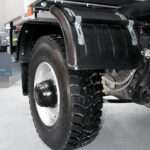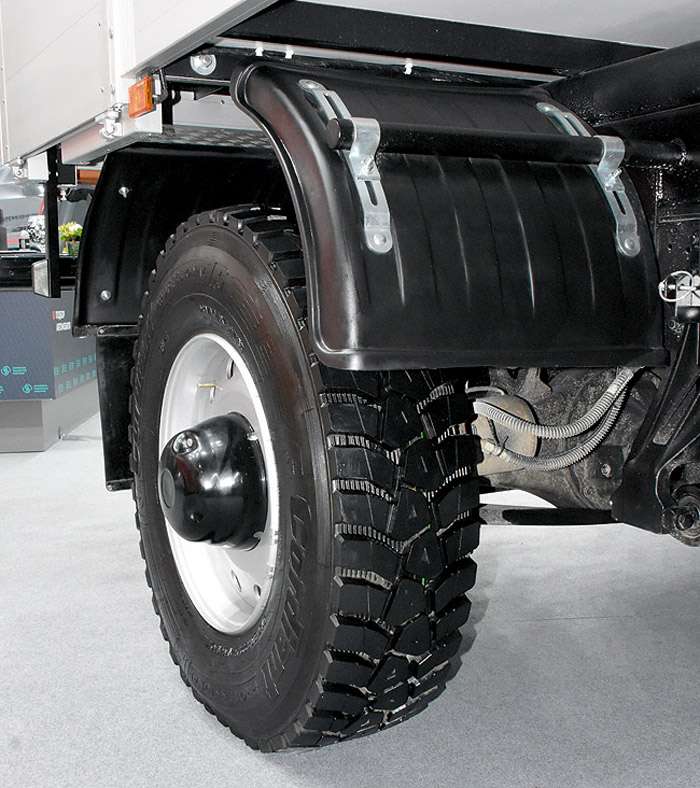 На «девятке» применены новые ступичные узлы и новые колеса. Неразборные диски размером 9х22,5 центрируются по ступице. Шины размерностью 315/80 R22,5 имеют универсальный рисунок протектора. Такие и на умеренном бездорожье не спасуют, и на асфальте не будут досаждать воем при движении. Система регулирования давления в шинах не предусмотрена. «Резина» здесь скорее грузовая, чем внедорожная, и на эксплуатацию при пониженном давлении просто не рассчитана. Но отсутствие подкачки в определенной мере компенсируется большей шириной самих шин. Пятно контакта получается таким же, как у шин «Садко-Next» с уже частично сниженным давлением.
