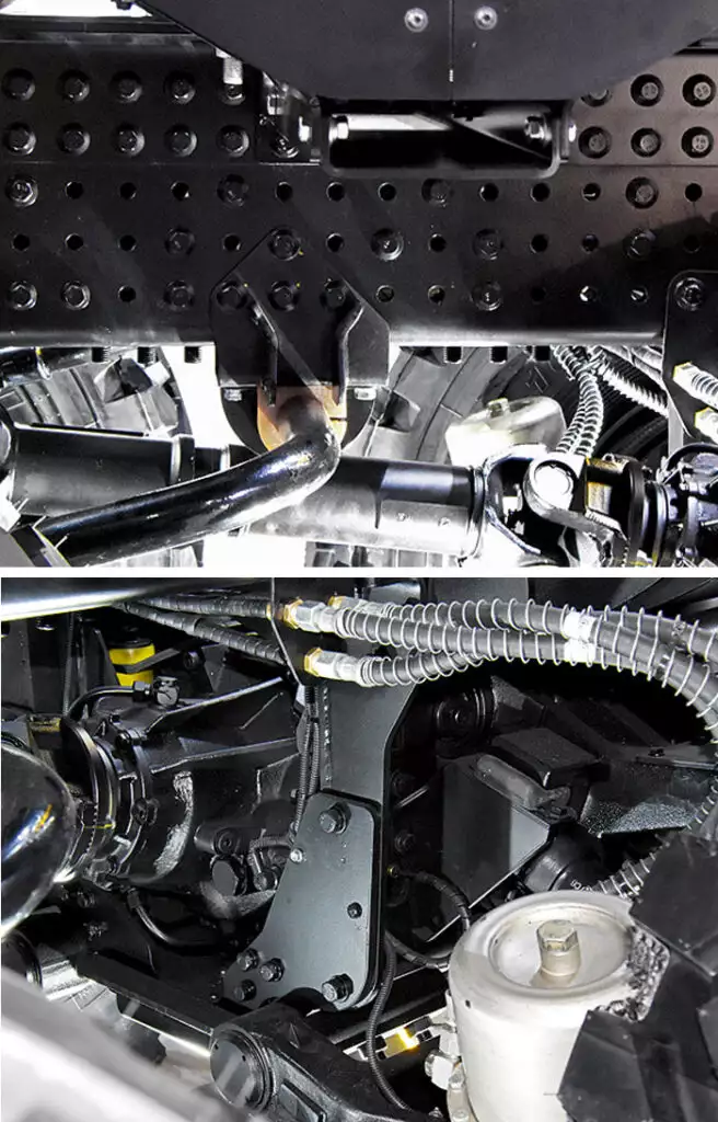 Про широкий выбор кабин, тоже, кстати, унифицированных, уже было сказано. Пять типов кабин собирают на каркасах двух видов. Под кабиной пока прописался единственный дизель, но в конструкцию машины заложены и другие варианты – сюда без проблем встанет, например, китайский Weichai из линейки WP12 или WP13. Замена силового агрегата не потребует серьезного вмешательства в конструкцию. Также могут использовать иные КП – Fast Gear из Поднебесной.