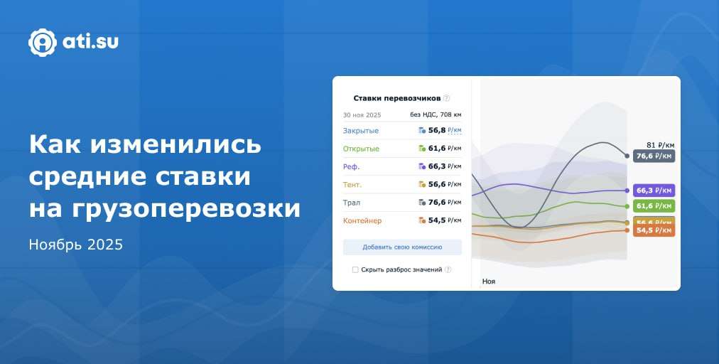 Источник данных: сервис «Средние ставки» от крупнейшей в России и странах СНГ Биржи грузоперевозок ATI.SU.