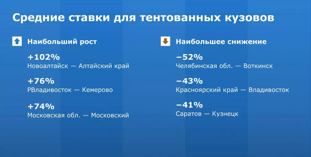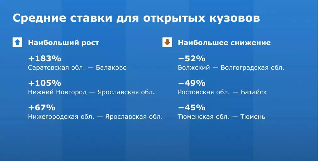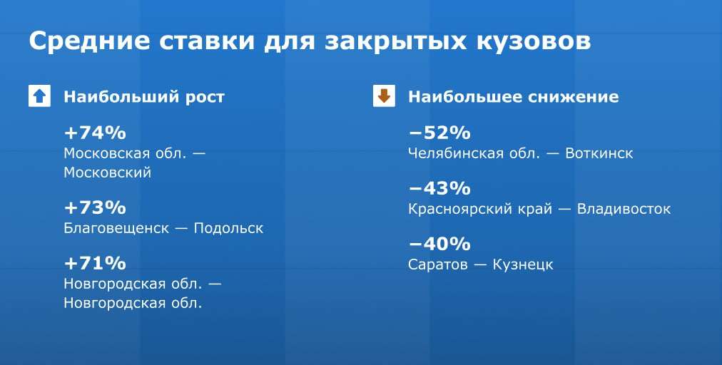 По каким направлениям ставки на перевозки грузов автотранспортом выросли или снизились сильнее всего для различных типов кузовов