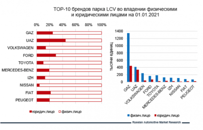 По данным Russian Automotive Market Research, в России большая часть парка легких коммерческих автомобилей находится во владении физических лиц и ИП.