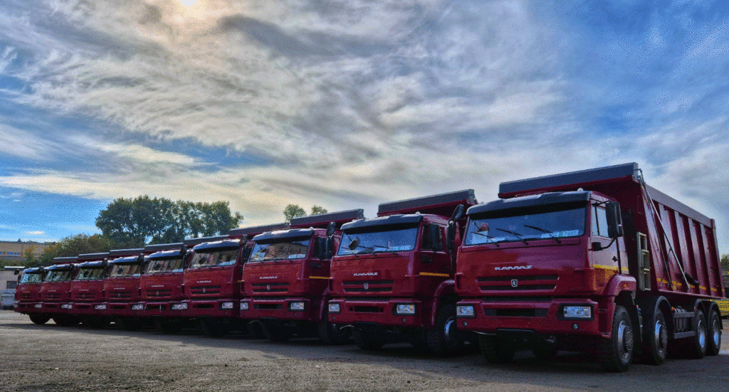 Самосвалы отправятся на строительные площадки, объекты дорожной инфраструктуры и промышленные зоны, обеспечивая доставку значительных объемов стройматериалов и промышленного сырья.