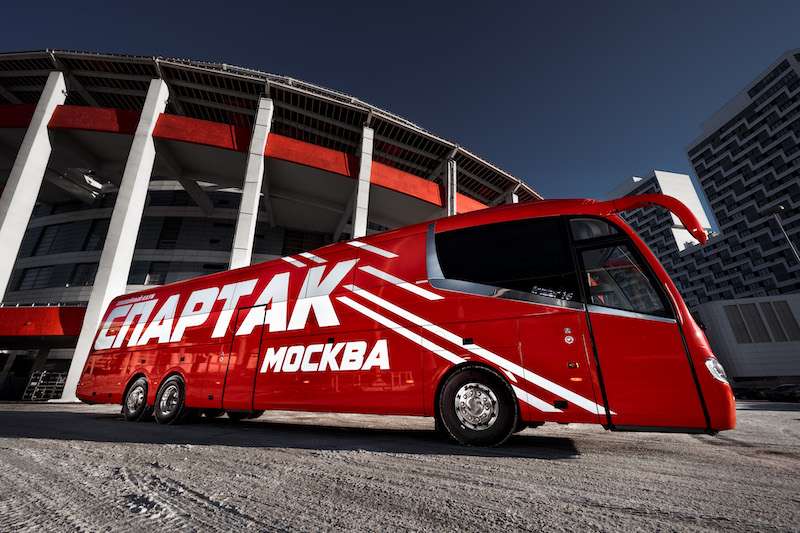 Ярко-красный брендированный автобус с логотипом «Спартак» заменил в автопарке хоккейного клуба предыдущего устаревшего «собрата» другой марки. При выборе модели руководство клуба и команды рассматривали четыре варианта автобусов.