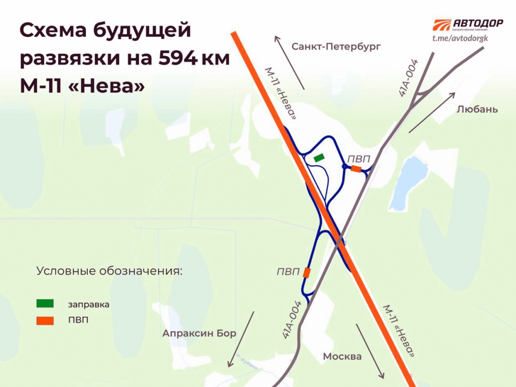 В Ленинградской области приступилили к строительству новой транспортной развязки на участке федеральной трассы М-11 «Нева» вблизи населенного пункта Павлово, в точке пересечения с региональной дорогой 41А-004 «Павлово – Мга – Шапки – Любань – Оредеж – Луга». Реализация проекта инициирована по инициативе местных жителей и согласована с властями Ленинградской и Новгородской областей.