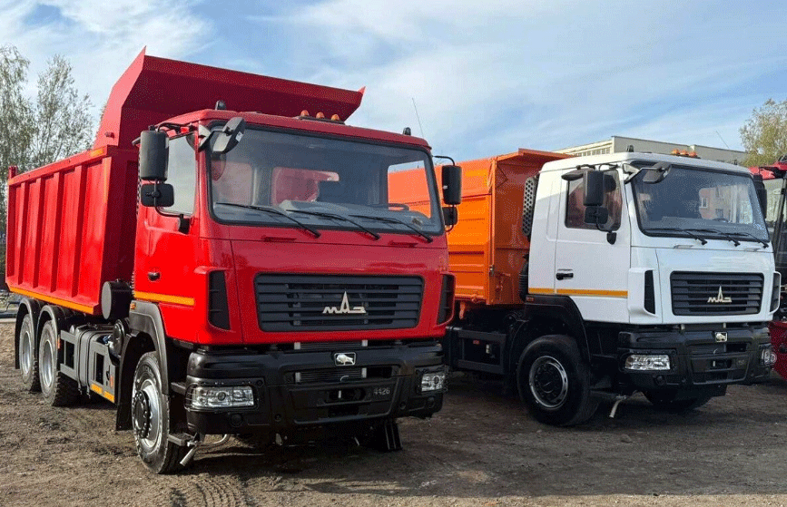 На ежегодном агропромышленном мероприятии «Дожинки-2025» в Могилевской области в Белоруссии были показаны две новые модели самосвалов марки МАЗ: среднетоннажный «МАЗ-5550С5» и тяжелый «МАЗ-650128». Сборка обоих грузовиков производится на предприятии «Могилевтрансмаш».