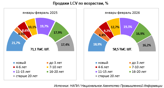 По статистике агентства НАПИ за первые два месяца 2026 года общие продажи новых и подержанных LCV сократились на 17,6%, составив 58,5 тыс. единиц.