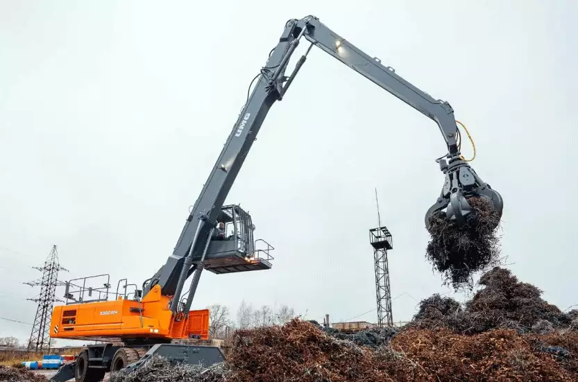 Перегружатель Э350WH предназначен для погрузки и разгрузки разнообразного сырья, включая металлические отходы, строительные материалы, уголь, песок, гравий, лесоматериалы и металлы. Конструкция допускает установку различного дополнительного оборудования: грейферов для насыпных и штучных грузов, захваты для бревен с функцией поворота, мощные электромагнитные захватывающие устройства, позволяющие расширить сферу применения перегружателя.