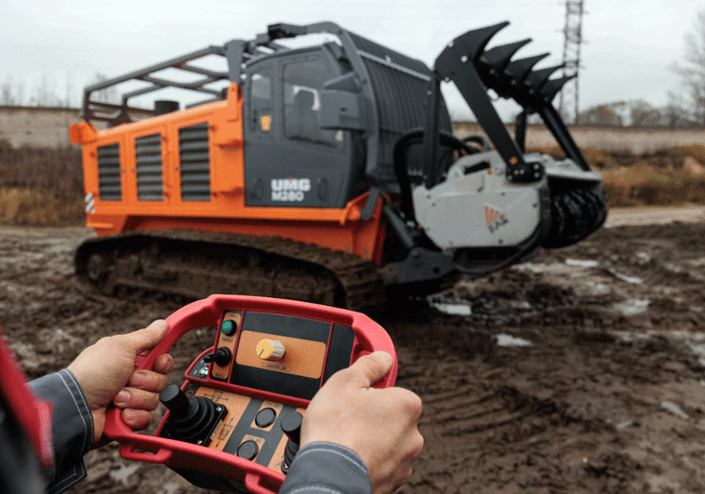Компания UMG представила уникальную разработку: систему дистанционного управления строительными машинами. Данная технология успешно прошла тестирование на полигоне на мульчере M280 и теперь доступна для широкого внедрения.