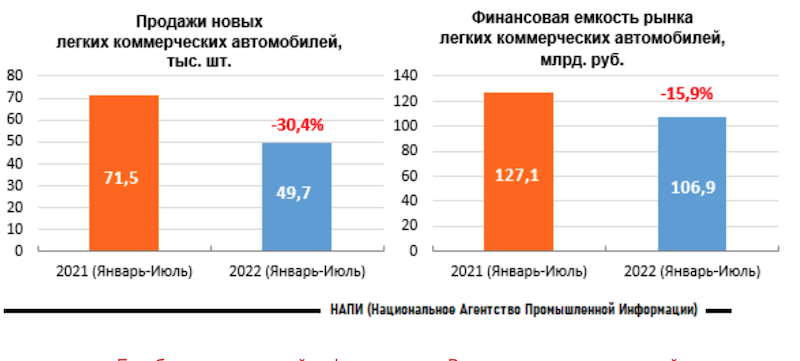 По данным маркетингового агентства НАПИ, за 7 месяцев текущего года на покупку новых легких коммерческих автомобилей было потрачено 106,9 млрд. руб., что на 15,9% меньше, чем годом ранее. При этом, продажи в «штуках» сократились на 30,4%.