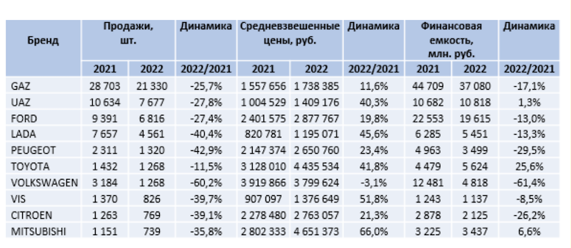Рынок в «деньгах» оказался более устойчивым из-за роста цен. Средневзвешенная цена нового легкого коммерческого автомобиля по итогам 7 месяцев 2022 года составила 2,1 млн. руб., по итогам 7 месяцев прошлого года – 1,8 млн. руб.